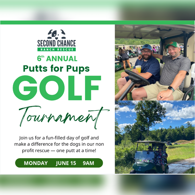 All proceeds from the Putts for Pups Golf Tournament help Second Chance Ranch Rescue continue to provide the best care, training and veterinary services to dogs in our care.